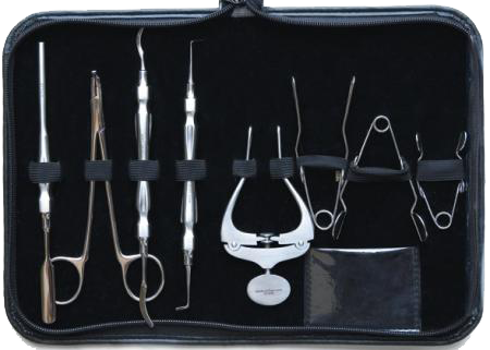 • Maulstapel • Nagerzahnextraktionszange • Nagerzahnluxator für Schneidezähne • Nagerzahnluxator für Backenzähne • Wangenspreizer in drei Größen (klein,mittel,groß) • Maulspreizer mit Gewinde
