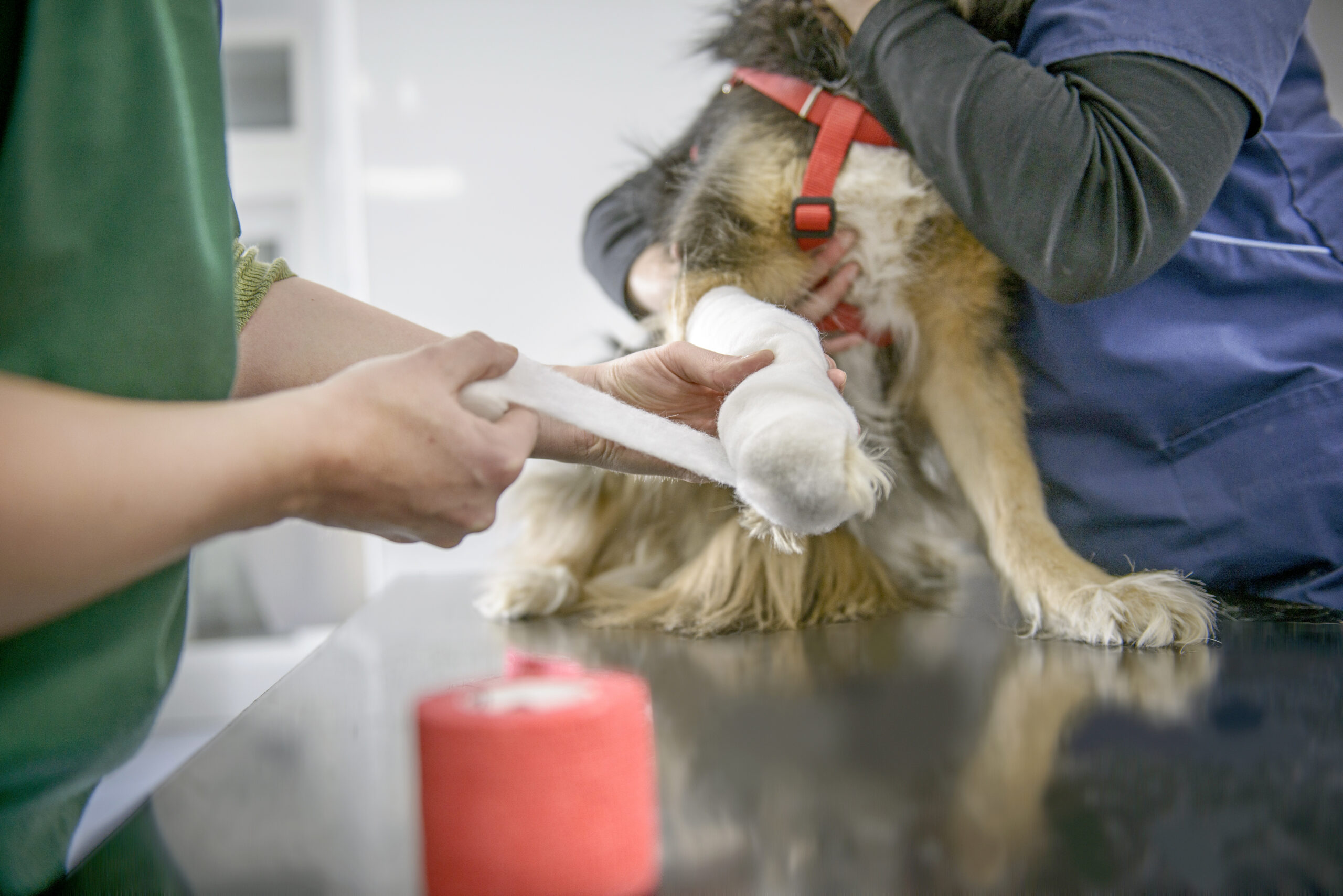 Wenn Ihr Euch nicht gleich traut, an einem Patienten zu üben, könnt Ihr auch Euer eigenes Tier nehmen. Sucht Euch zuerst eine weitere Person, die fixieren hilft. Dann bereitet Euch in aller Ruhe Eure Materialien vor. Denn nichts ist ärgerlicher, als wenn der Verband im letzten Moment verrutscht, weil ein Utensil fehlt und erst umständlich aus der Schublade gekramt werden muss.